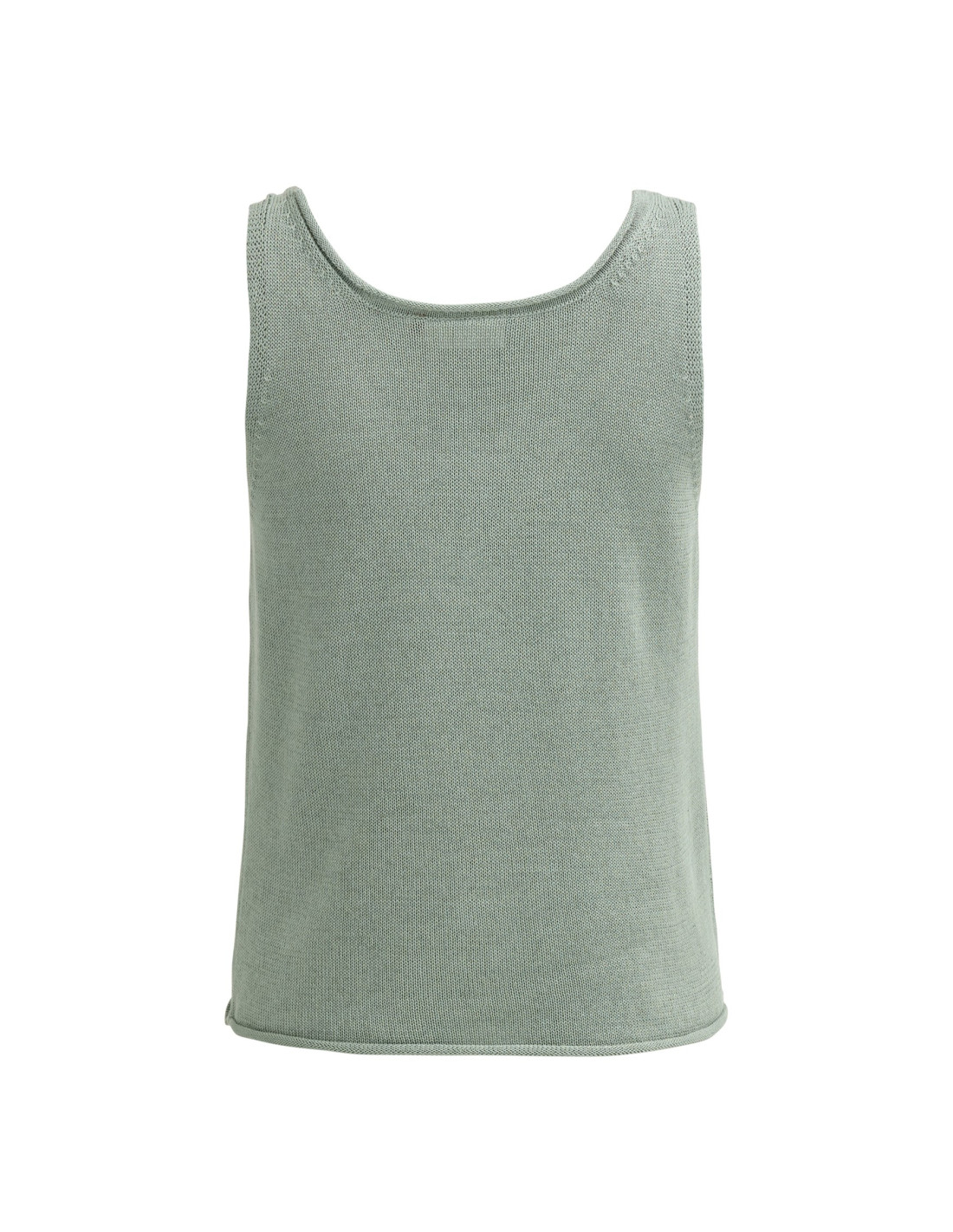 Proposta nel colore verde salvia, questa canotta si distingue per il taglio diritto e la vestibilità comoda, arricchita da un orlo arrotolato sul fondo che dona al capo un tocco di naturale eleganza e leggerezza. La texture ariosa e fresca la rende ideale per la stagione estiva, mentre grazie alla sua lunghezza regolare risulta facile da abbinare a shorts, gonne o pantaloni, per look versatili e curati.