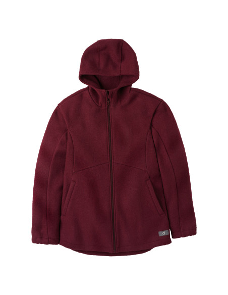 Il design funzionale prevede una chiusura frontale con zip ben protetta sotto il mento, un avvolgente cappuccio e due ampie tasche con cerniera lungo i fianchi. Per meglio trattenere il calore corporeo, il corpetto della giacca è foderato in jersey di 100% lana merino in colore grigio chiaro melange.