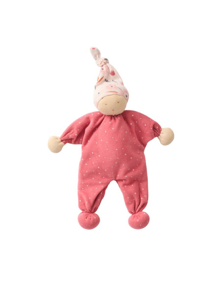 La bambolina morbida è realizzata in 100% cotone biologico certificato dal GOTS (Global Organic Textile Standard) e, come tutti i nostri doudou, può essere tranquillamente messa in mano al bebé perché dotato di solide cuciture, privo di parti pericolose o deglutibili oltre ad essere disegnato con tessuti ecosostenibili e privi di sostanze inquinanti.
