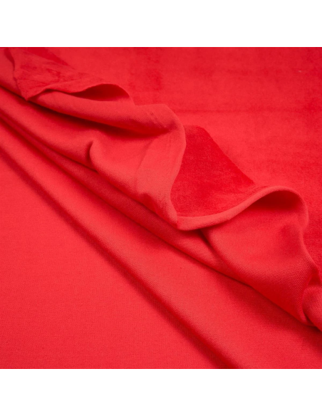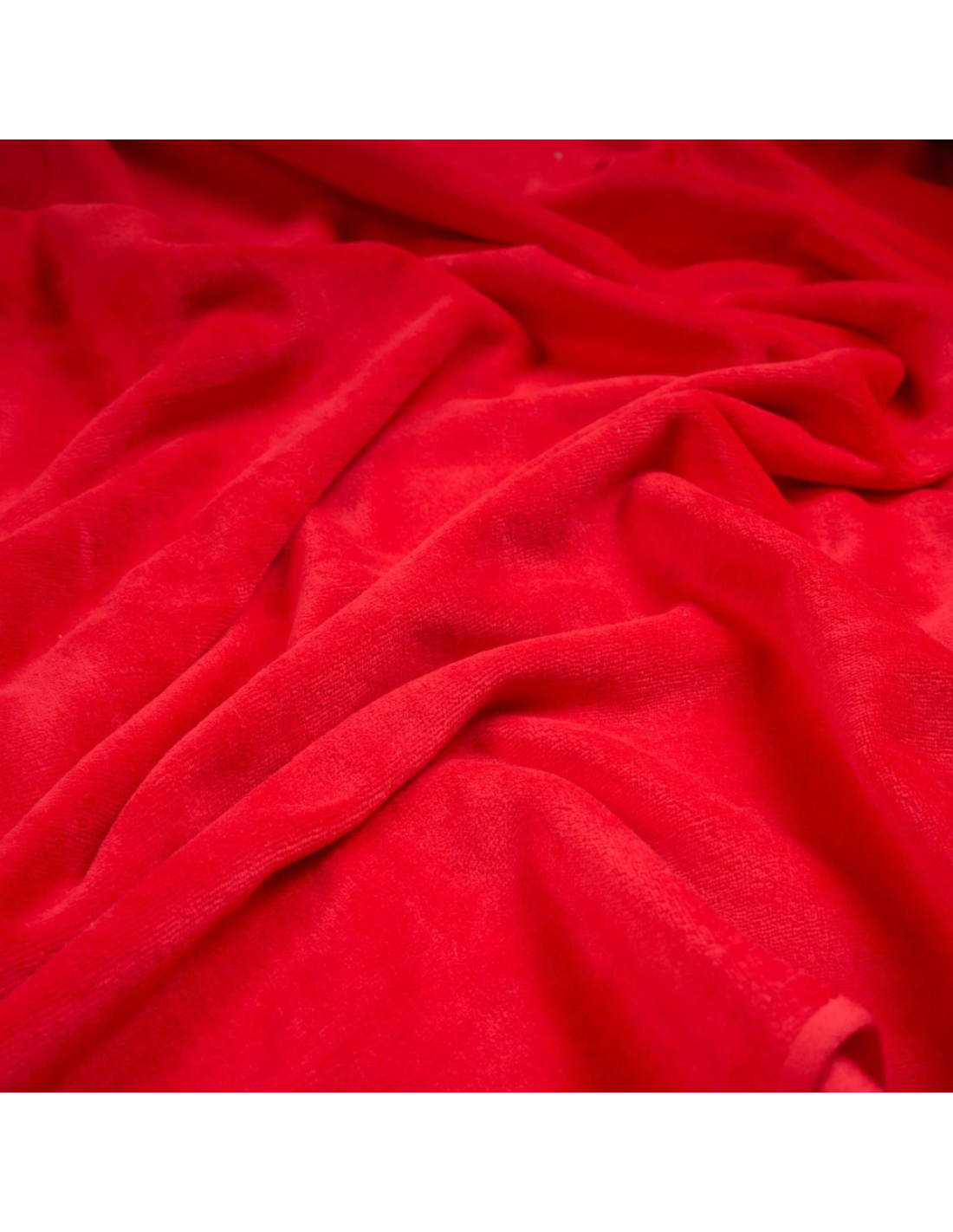Tessuto di ciniglia in taglio da 50x150cm, 90% cotone 10% poliestere, morbido ed elastico, colore Rosso lipstick, certificato da Oeko-Tex Standard 100