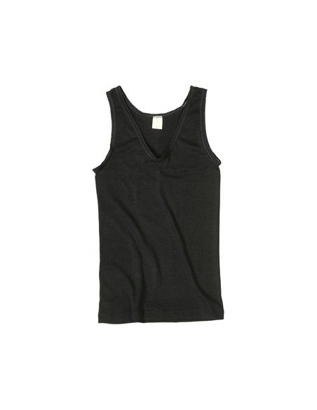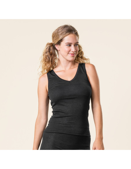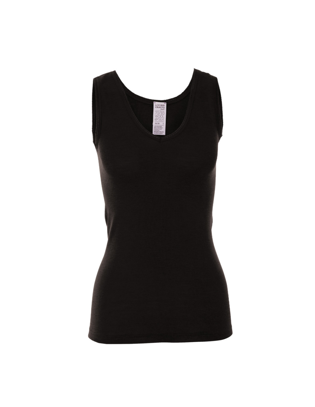 Canottiera donna in lana seta di Living Crafts a spalla larga e con scollo a V, realizzata al 70% in lana e al 30% in seta. Qualità biologica certificata dal marchio GOTS.