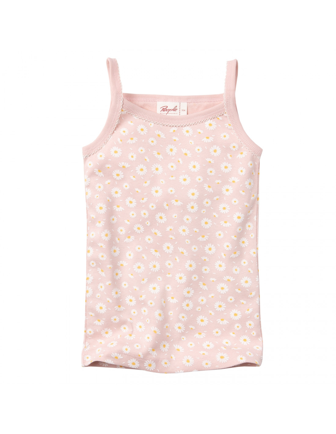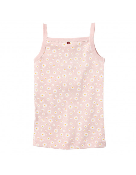 Canottiera bambina a spallina sottile di People Wear Organic in puro cotone biologico certificato dal GOTS (Global Organic Textile Standard), realizzata con un filato molto liscio e dermocompatibile, resistente e lavabile in lavatrice.