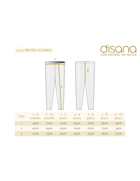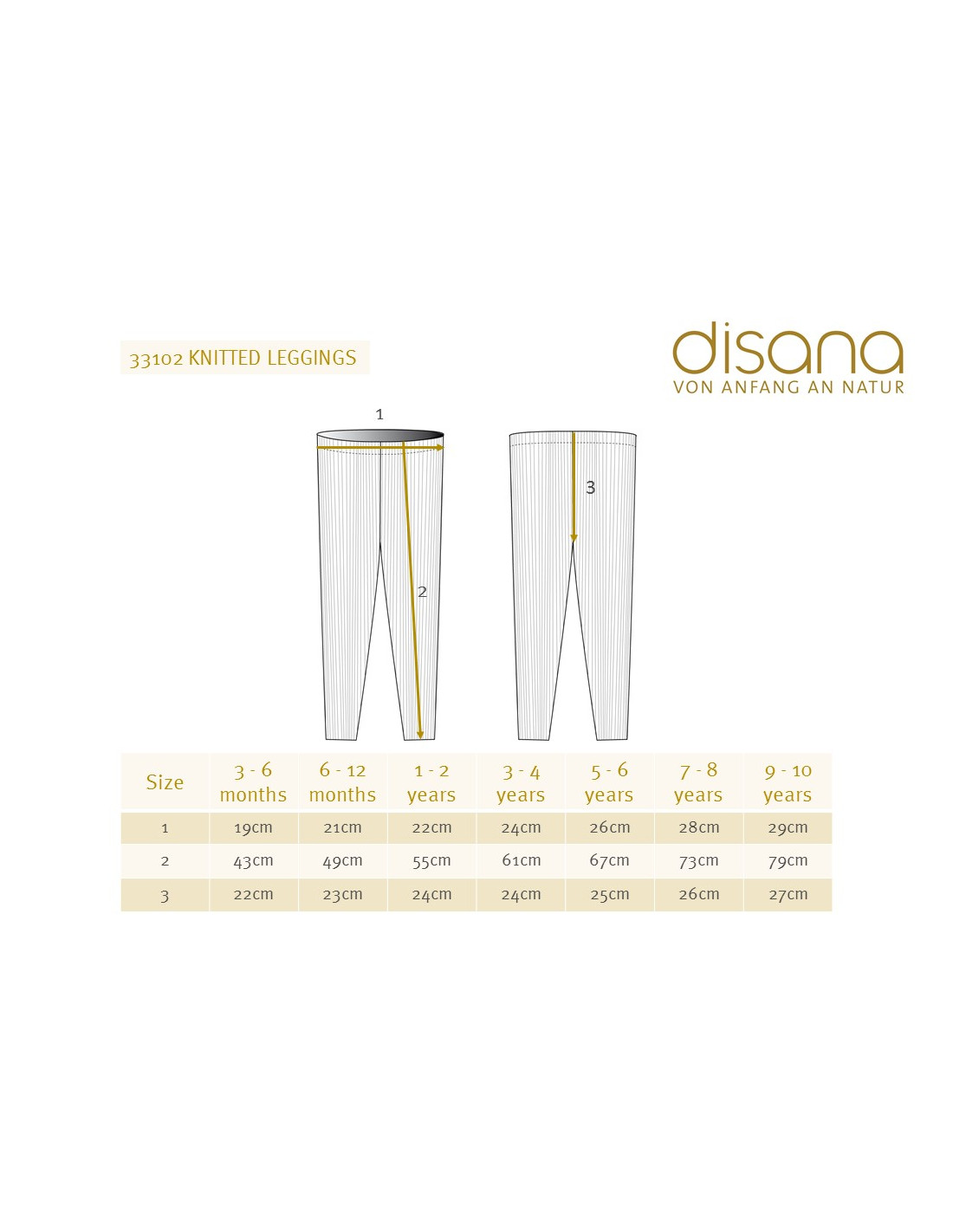 Leggings bambino Disana lavorati a maglia con elastico in vita realizzati al 100% in lana Merino da allevamento biologico, qualità biologica certificata dal GOTS (Global Organic Textile Standard).