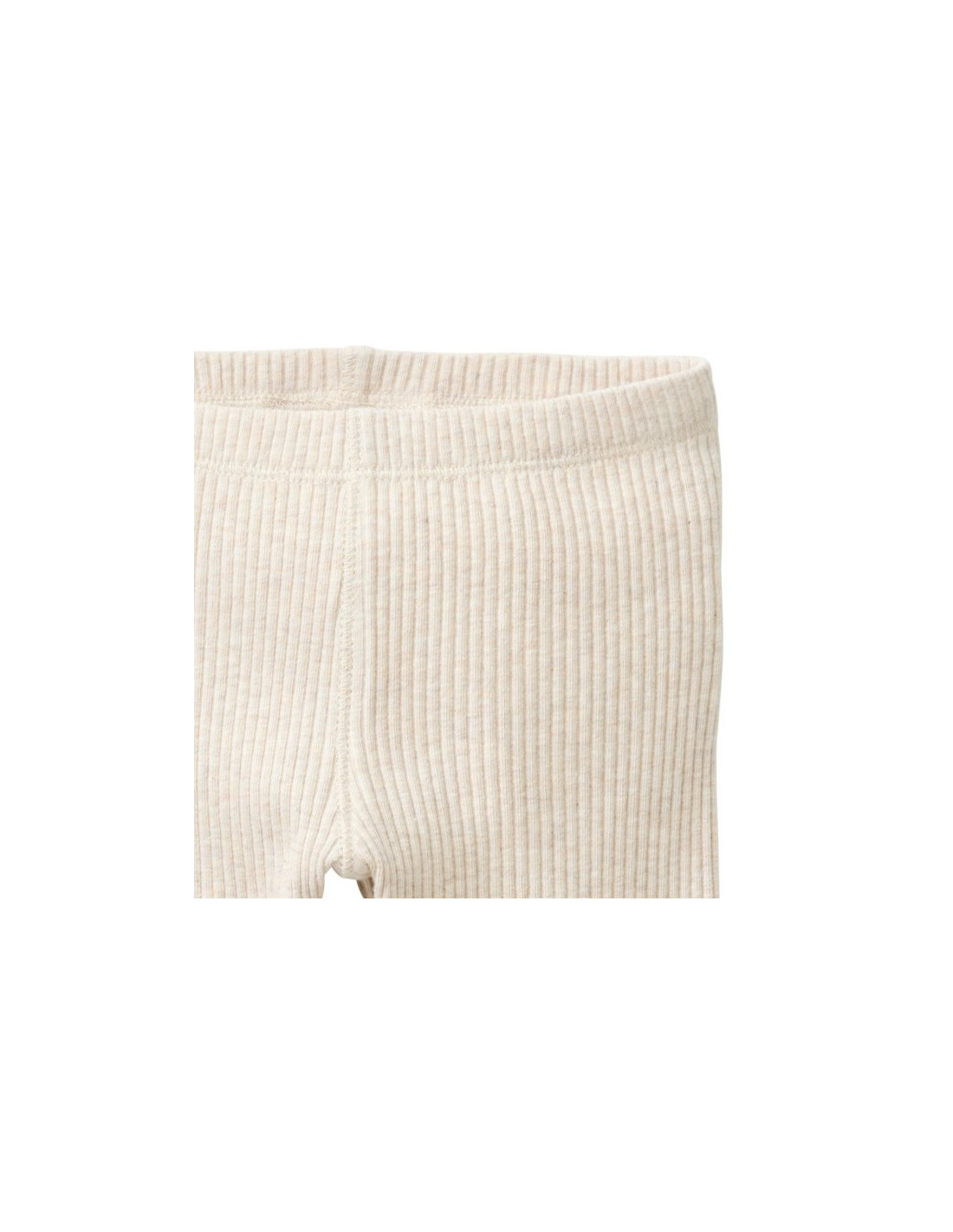 Leggings baby in cotone bio a costine di People Wear Organic, con polsini elastici risvoltabili alle caviglie, colore ecrù melange