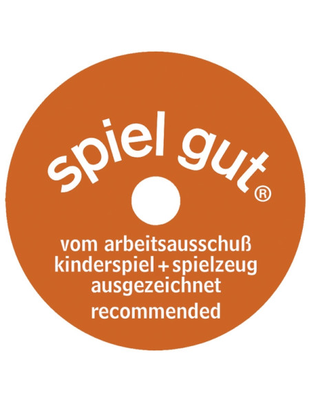 Questo gioco ha ottenuto il marchio "Spiel Gut" un riconoscimento tedesco che premia i giocattoli che contribuiscono allo sviluppo fisico e mentale dei bambini e li aiuta a scoprire il mondo.