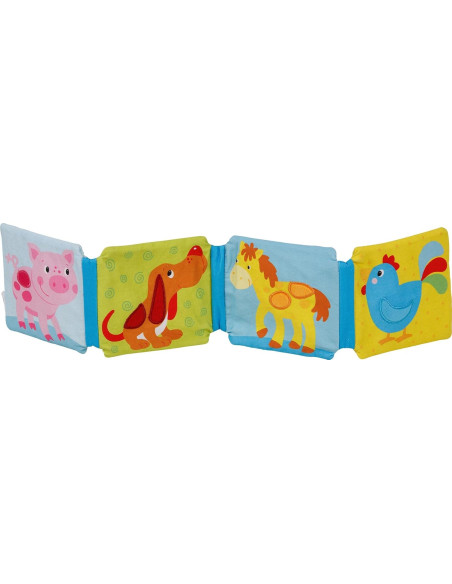 E' un libro morbido con immagini di animali che stimola i sensi del bambino piccolo invitandolo alla scoperte di materiali diversi, colori e suoni delicati emessi dai sonaglini e dallo scricchiolio racchiusi all'interno delle pagine.