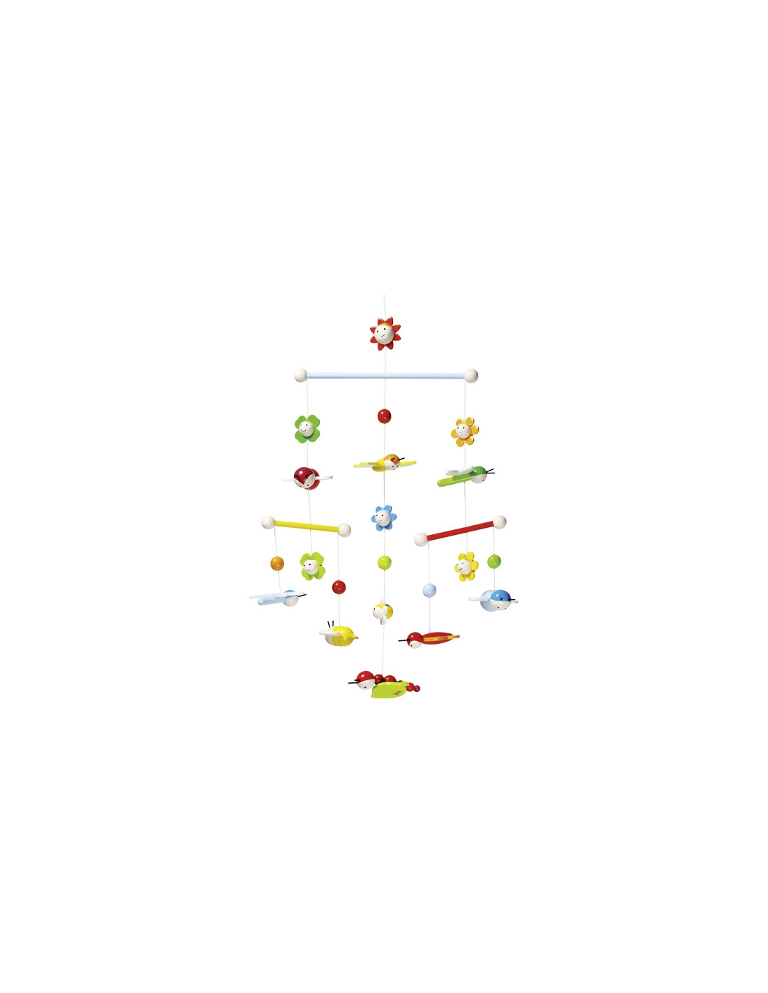 Allegra e colorata sospensione decorativa tridimensionale a soggetto primaverile di Goki, pronta a mettersi in movimento al primo spostamento d'aria o per effetto di un lieve tocco.