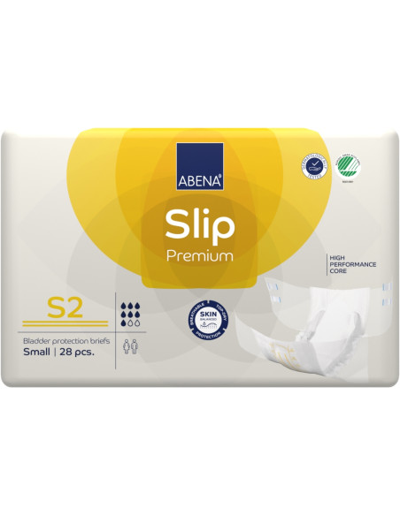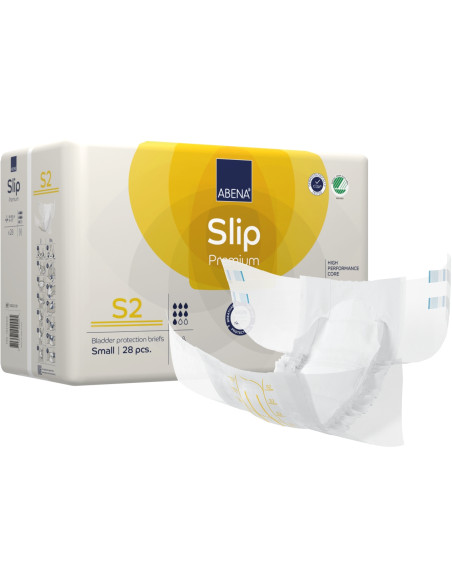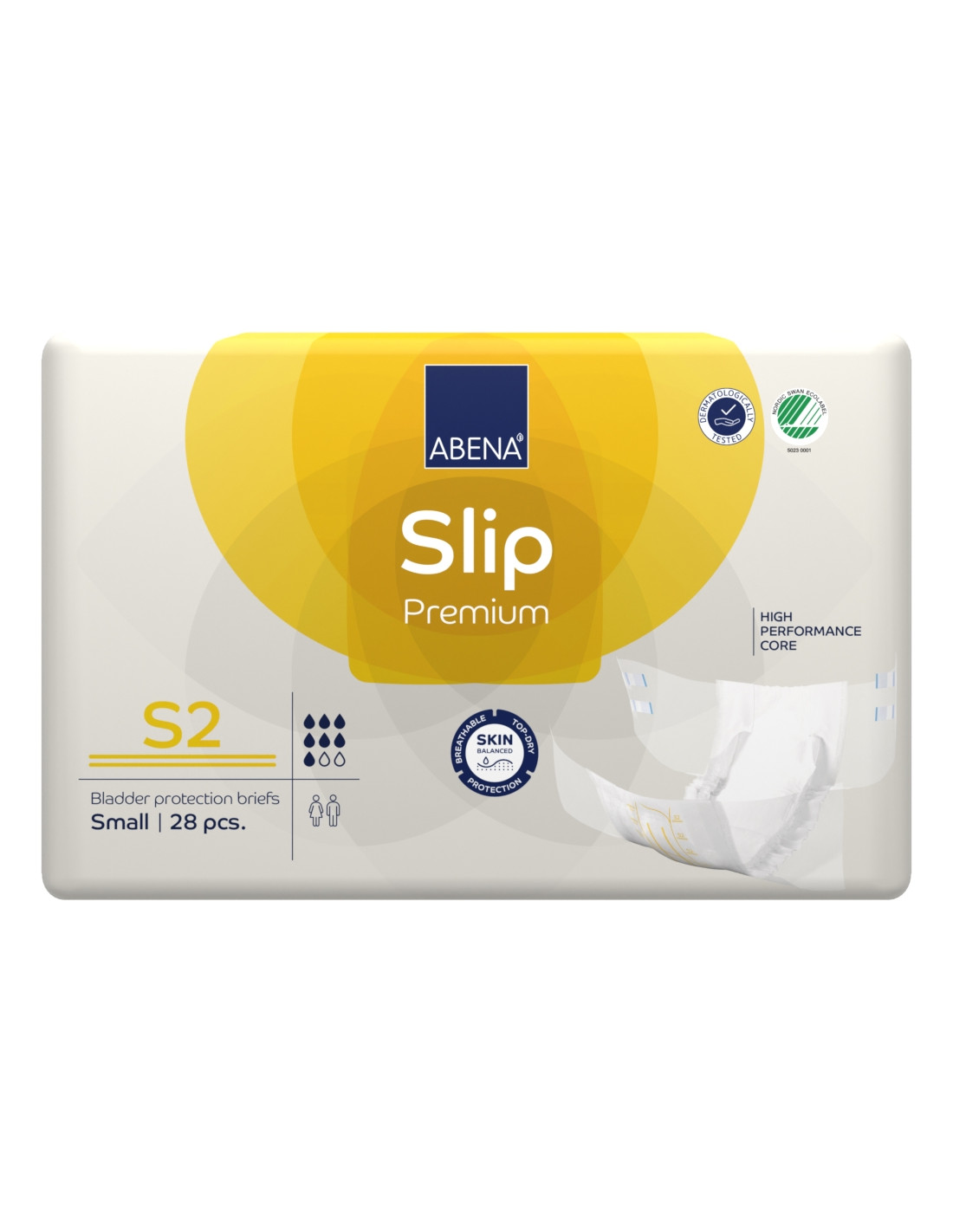 Pannoloni Abena Slip Premium S2 per ragazzi e adulti con incontinenza da moderata a forte, ecologici e 100% traspiranti, modello unisex adatto a misure giro fianchi 60-85cm - 1800ml - confezione da 28 pezzi