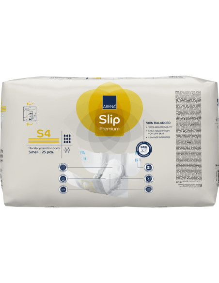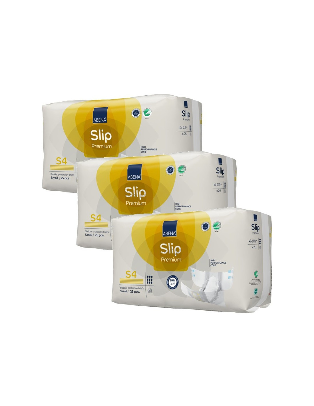 Pannoloni Abena Slip Premium S4 per ragazzi e adulti con incontinenza forte, sostenibili e 100% traspiranti, modello unisex adatto a misure giro fianchi 60-85cm - 2200ml - pacco scorta da 75 pz (3x25 pezzi)