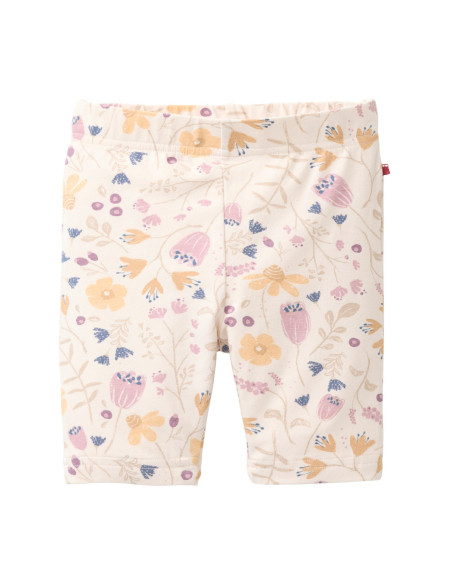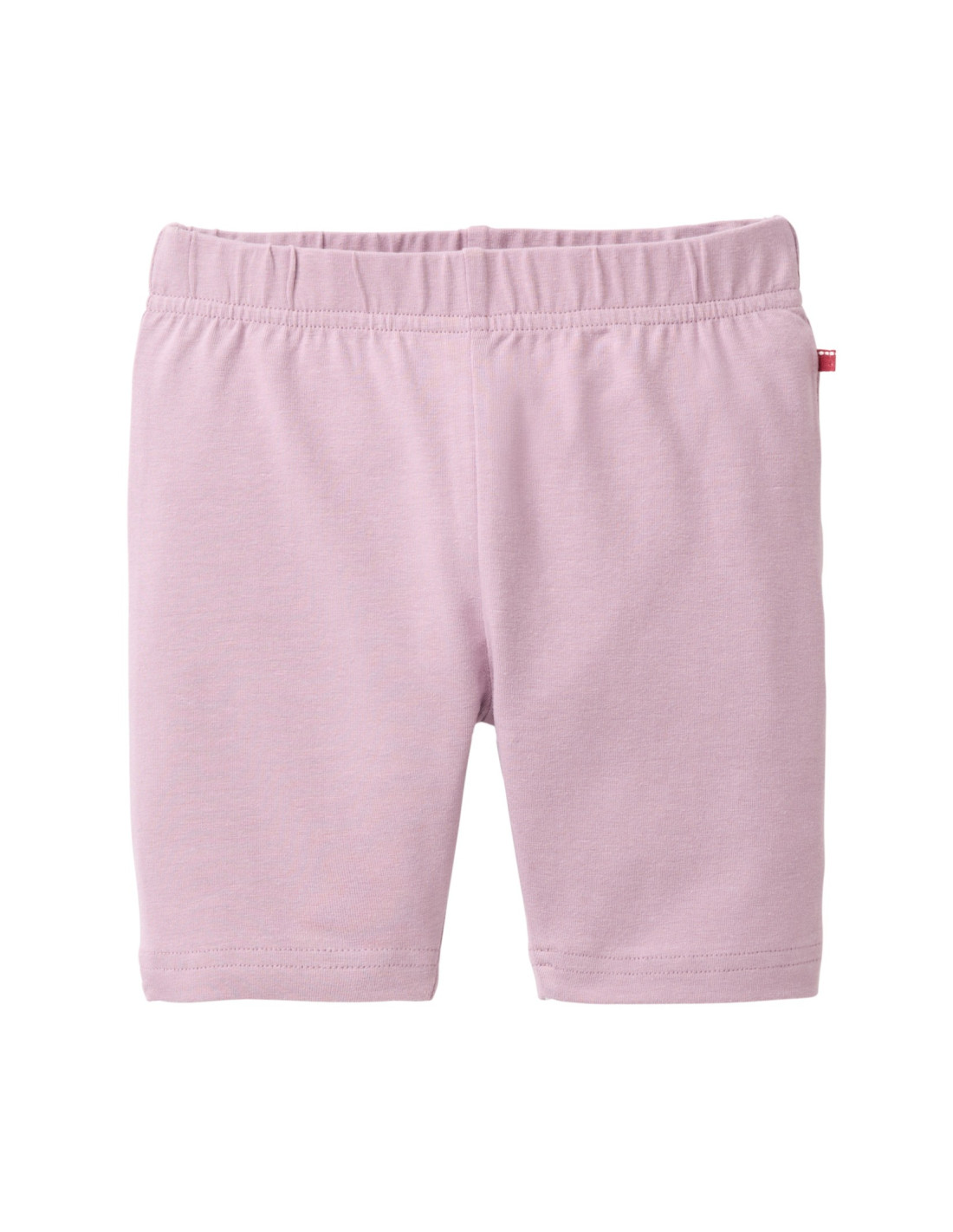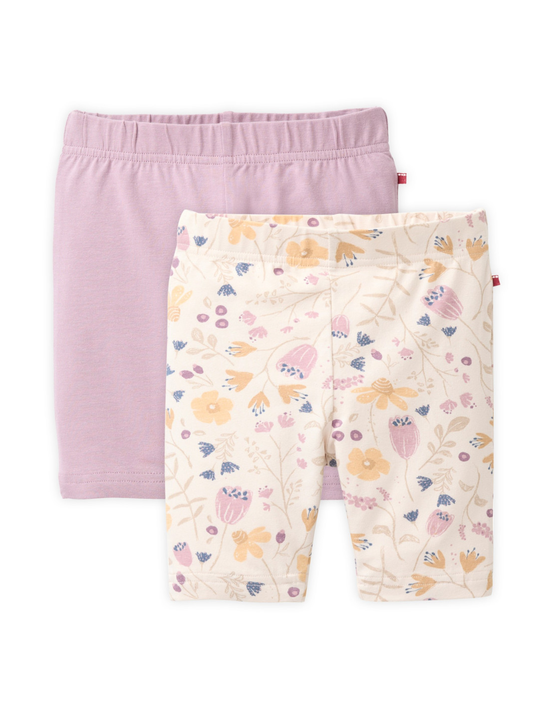 Set 2 Pantaloncini ciclista bimba in cotone bio elasticizzato di People Wear Organic, taglio slim e skinny, pratici e leggeri l'estate, confezione da due pezzi uno colore malva e l'altro in un delicato rosa cipria con motivo floreale stampato