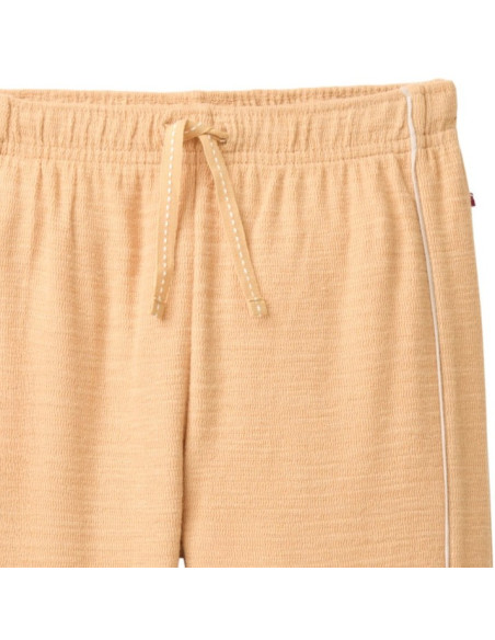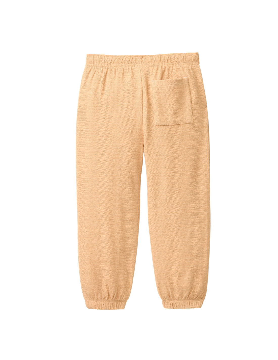 Pantalone tuta leggero in 100% cotone biologico testurizzato di People Wear Organic, modello con elastico in vita, coulisse regolabile e taschina posteriore, colore giallo miele