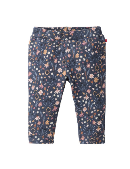 Treggings baby in cotone biologico felpato di People Wear Organic, pratici e caldi, con elastico alto in vita, colore blu fantasia fiori