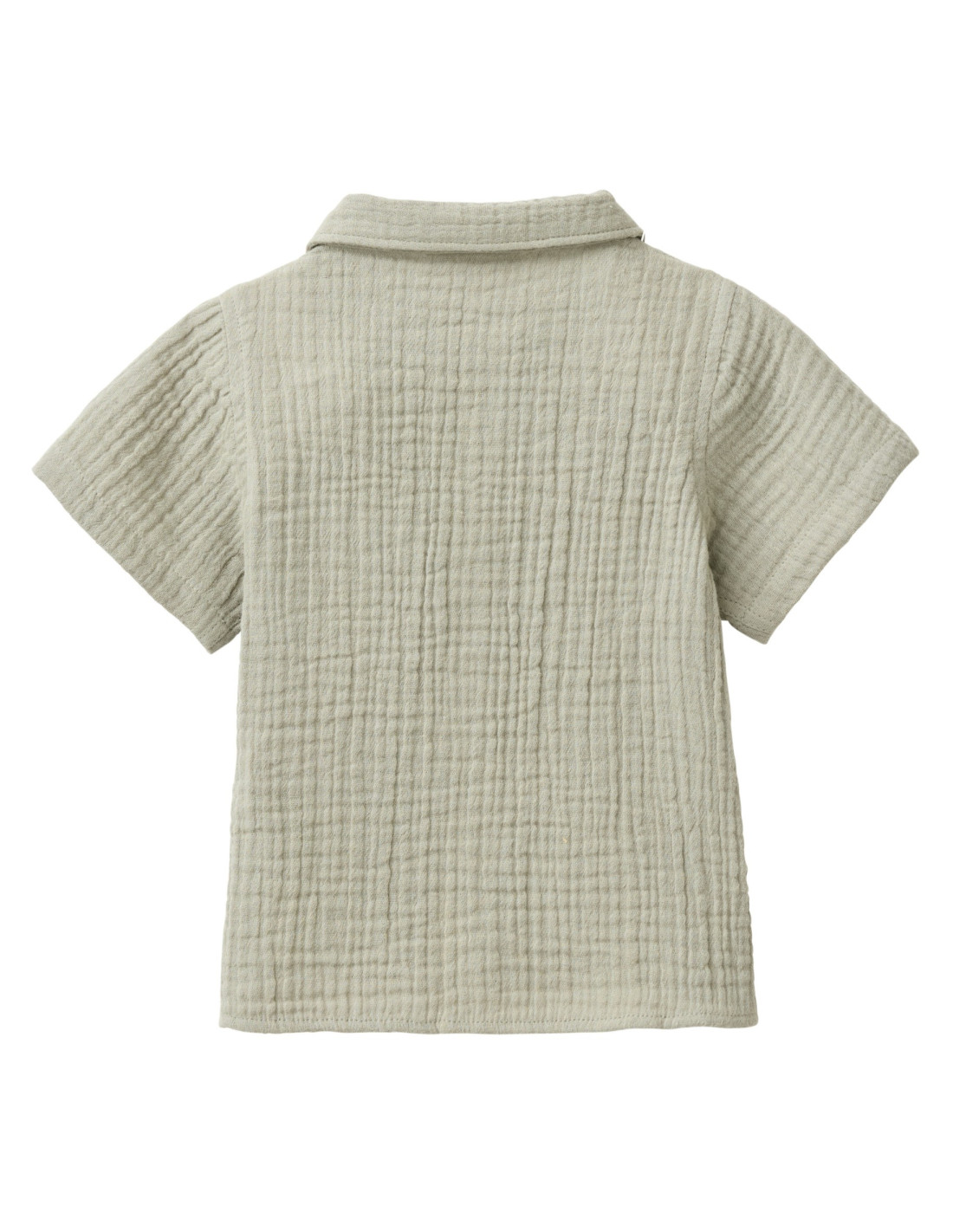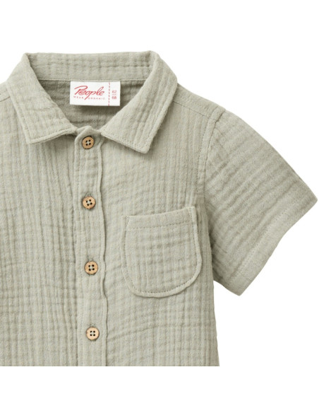 Camicia baby a maniche corte firmata People Wear Organic, realizzata in 100% mussola di cotone biologico certificato GOTS (Global Organic Textile Standard). Un capo fresco, leggero e delicato, ideale per la pelle sensibile dei più piccoli.