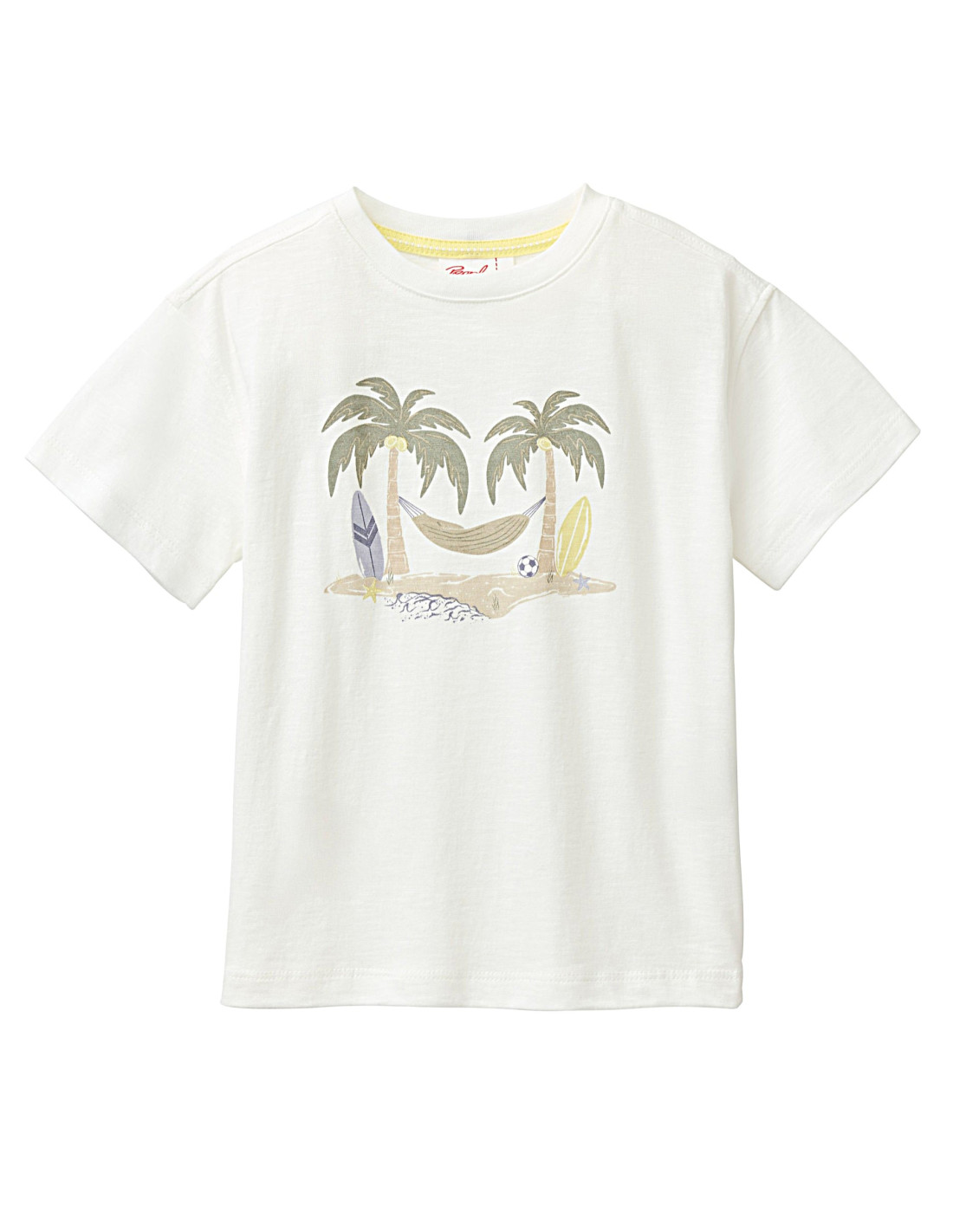Il modello è proposto nel colore bianco ed è arricchito dalla stampa “Fun Island”, che dona alla maglietta un vivace spirito vacanziero.