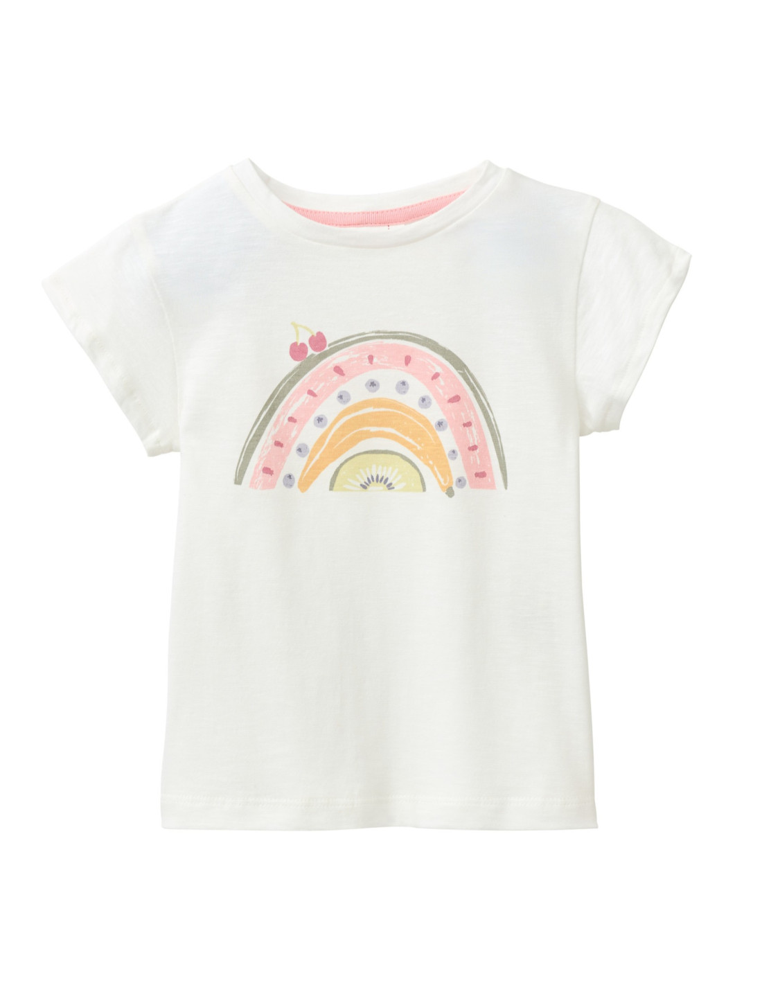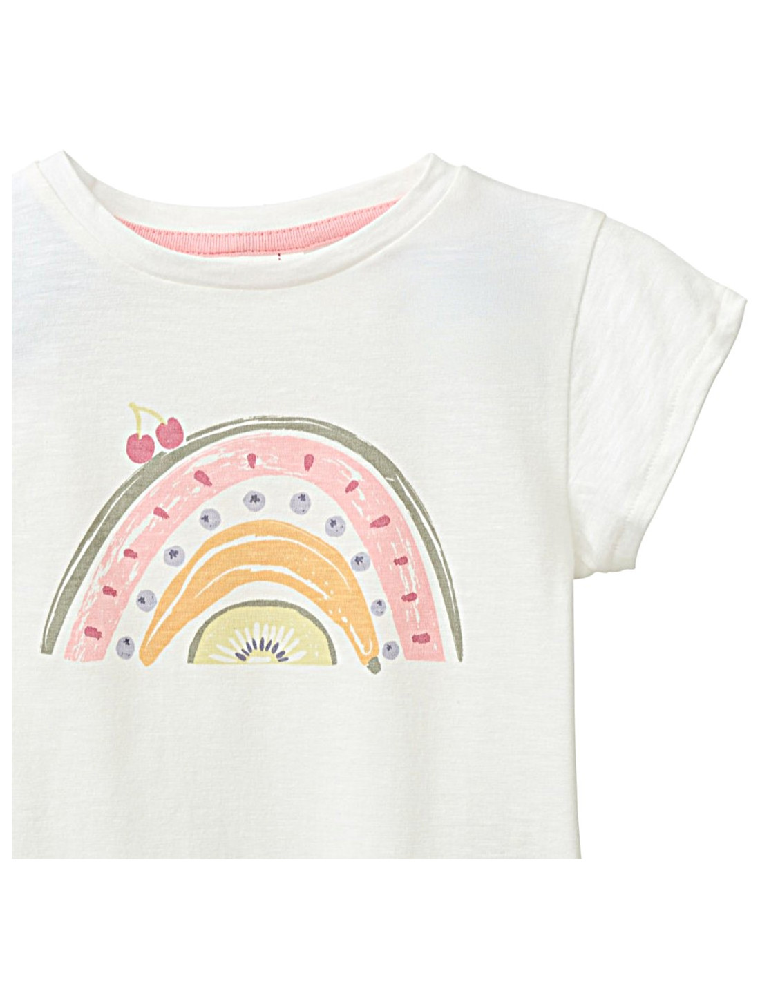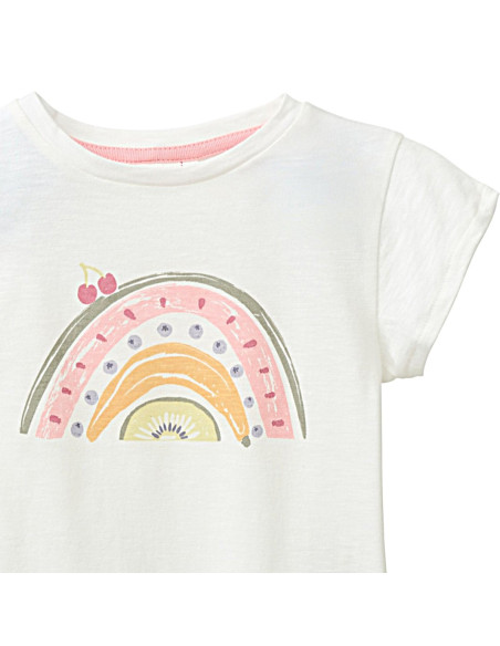 T-Shirt bambina in morbido cotone bio fiammato di People Wear Organic, leggera e fresca per l'estate, colore bianco con motivo stampato "Arcobaleno"