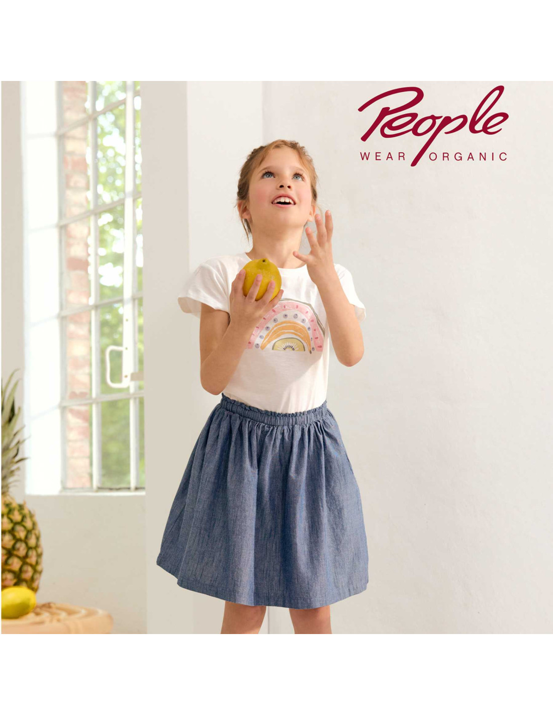 T-Shirt bambina firmata People Wear Organic, realizzata in 100% jersey di cotone biologico certificato GOTS (Global Organic Textile Standard). Un capo fresco e leggero, pensato per offrire comfort e delicatezza sulla pelle sensibile dei bambini.